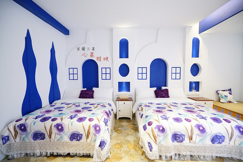 心星相映民宿位在宜蘭三星,民宿擁有2間雙人房、2間四人房,每間客房各有特色,利用彩繪牆與精緻的裝飾擺設,營造出不同的風情,有溫馨舒適鄉村風、浪漫公主風、藍白相間的地中海風情與夢幻的吉米風。